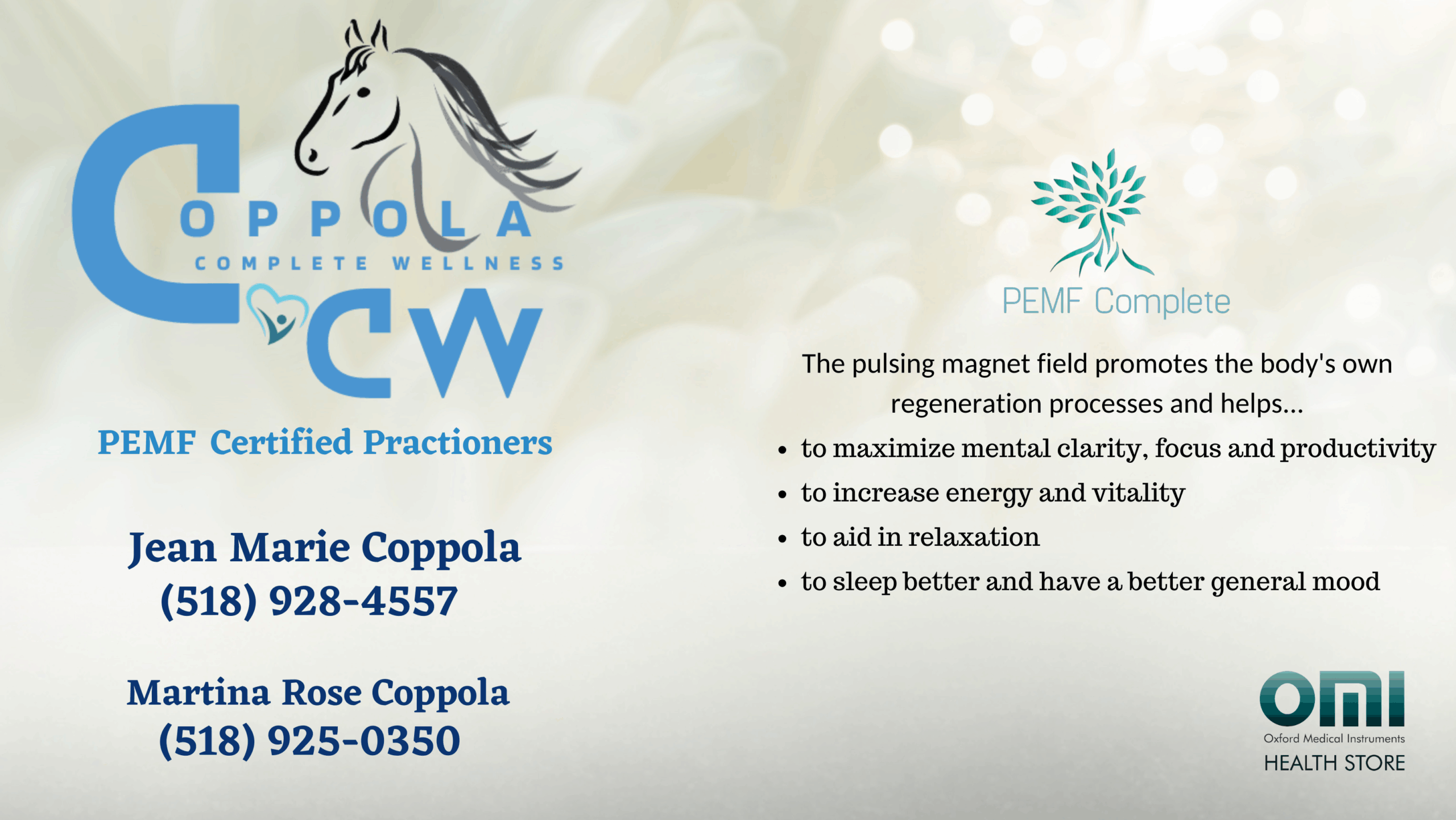 We are certified practitioners offering PEMF Therapy on both animals and people. PEMF is Pulsed Electro-magnetic Field (Frequency). Rest assured that we use a well trusted, ultra-low frequency PEMF Complete certified medical device. Each device has a medical safety number available for viewing on the cover of each device. PEMF technology is FDA approved
